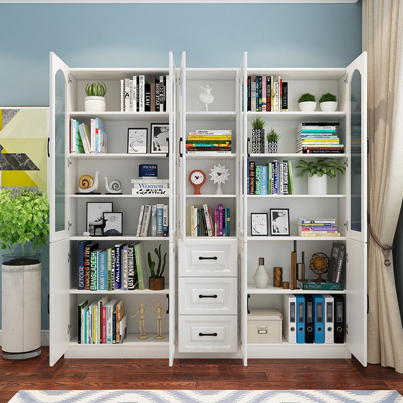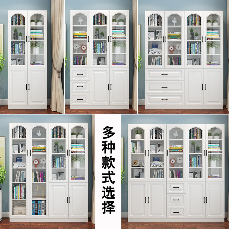 Simply modern household bookshelf Nordic bookcase free combination of economic glass door white shelf