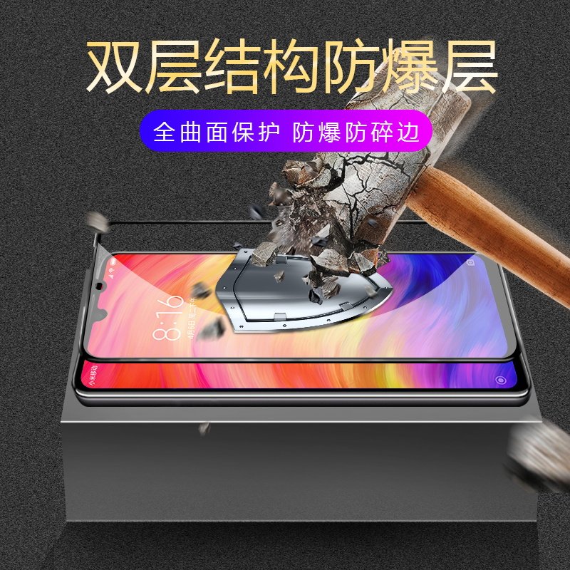 Applicable to Red Rice Note7 Tempered Film Full Screen Covered Redmi Note7Pro Mobile Phone Soft Side All-Backleedge Redmi New Not7 Blu-edge Original Anti-Wrest Eye-Protection Fingerprint Phone