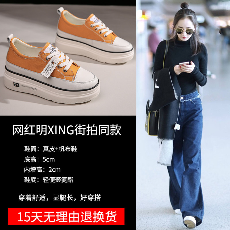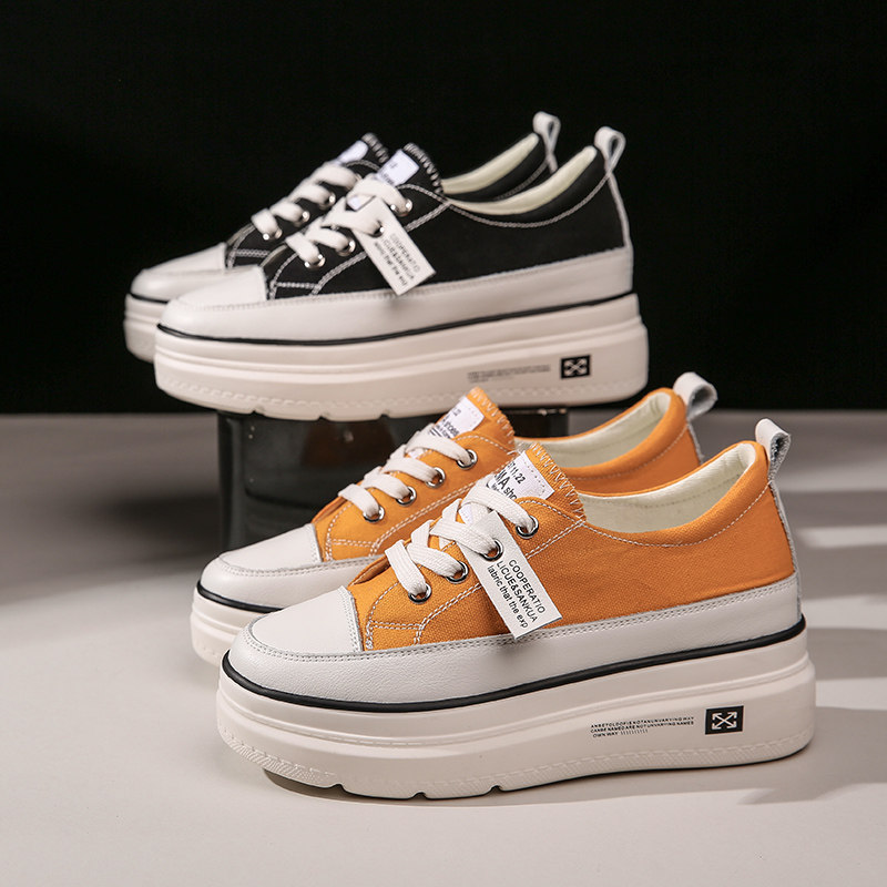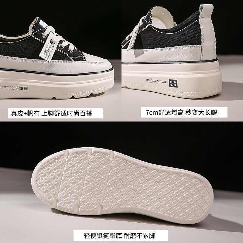 South Korea's heightened casual Korean version of Baichun canvas shoes platform thick bottom 2022 winter new white women's shoes