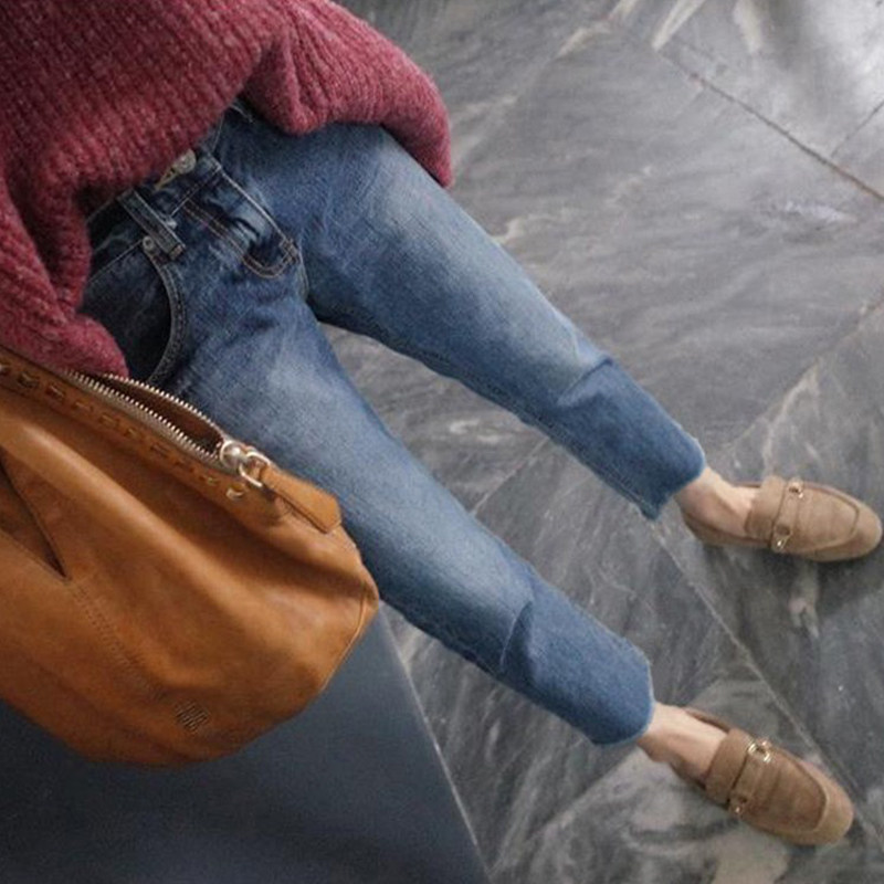 90% straight cylinder jeans woman 2022 spring autumn new retro chic high waist small sub loose with lazy 80% pants
