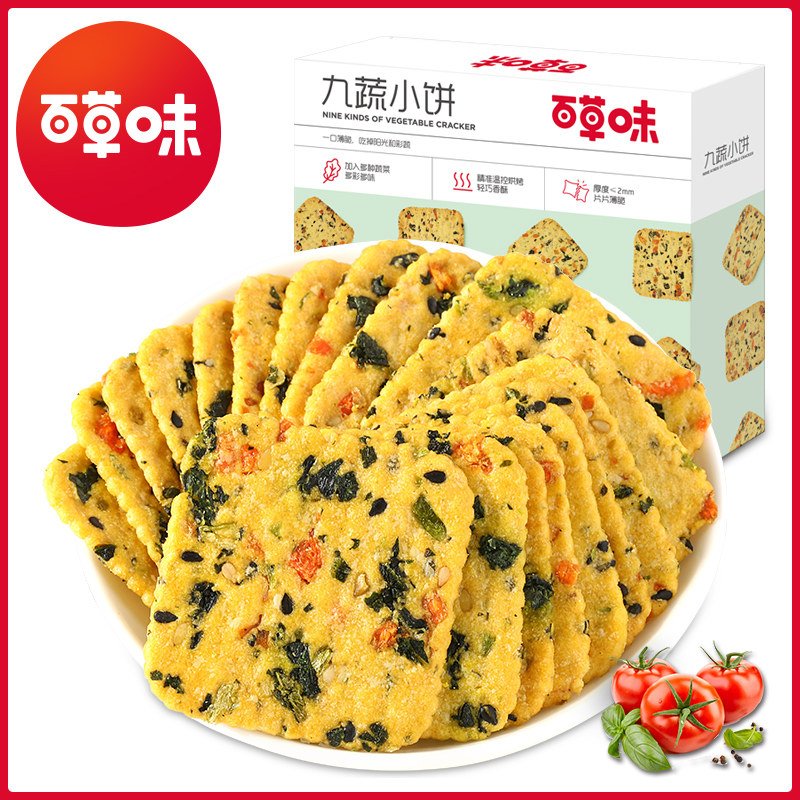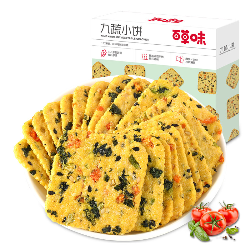 Grass-flavored nine vegetable crackers 180g * 2 boxes of office casual snacks biscuits morning meal vegetable crisps
