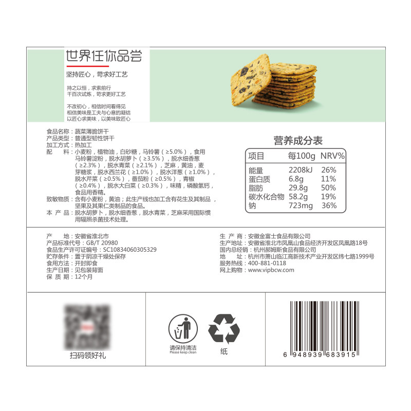 Nine vegetable crackers 180g * 1 box of seaweed flavored crackers 308G * 1 Box nine vegetable crackers 180g * 2 boxes (seaweed flavor) crackers 308G * 2 boxes
