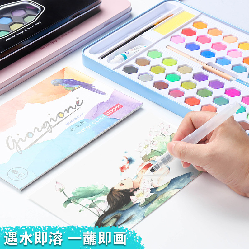 Giorgione solid watercolor paint set paintbrush powder beginner 36 color portable with iron box 48 color primary school students with art professional non-toxic washable children's painting tools