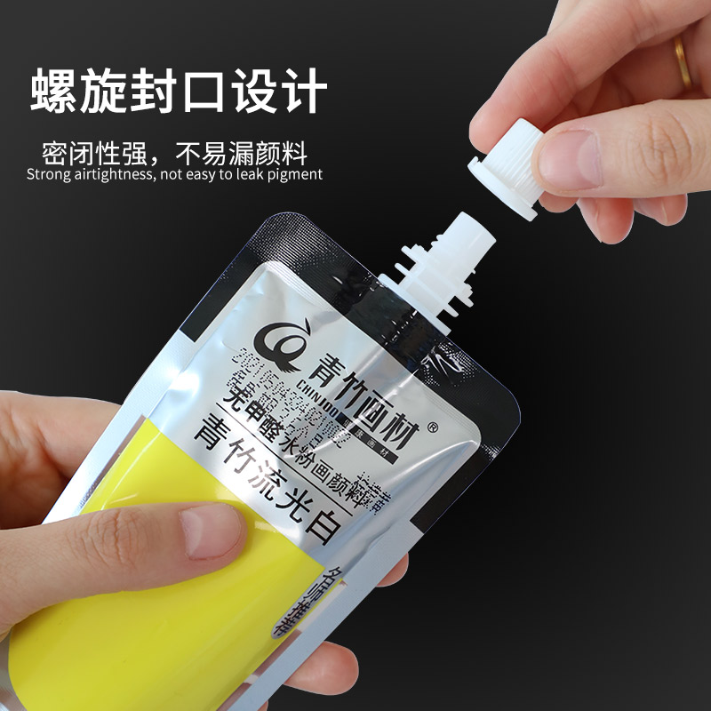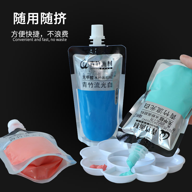 Green Bamboo Water Powder Paint 100ml Supplementary Pack Students Use Fine Arts Students Special 42 Color Bagged Suit Portable Single Fill Flow Light White Jelly Large Capacity Titanium White Color Large Bottle Drawing Material
