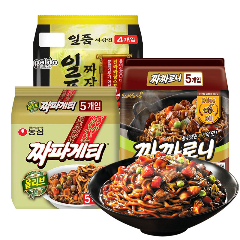 Nongshim Fried Soy Sauce Noodles in Five Packs with Three Yang Fried Soy Sauce Noodles Sauce