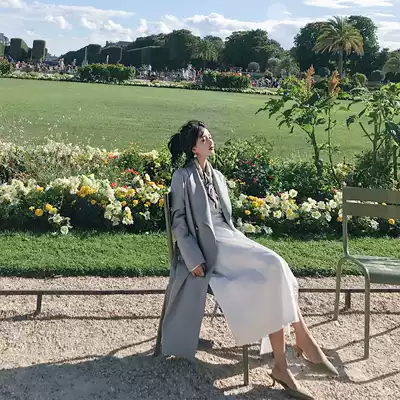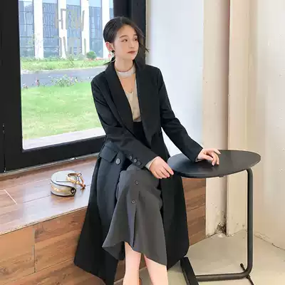 Big happy homemade trench coat women's long version 2019 Autumn New Korean coat waist slim suit collar thin coat