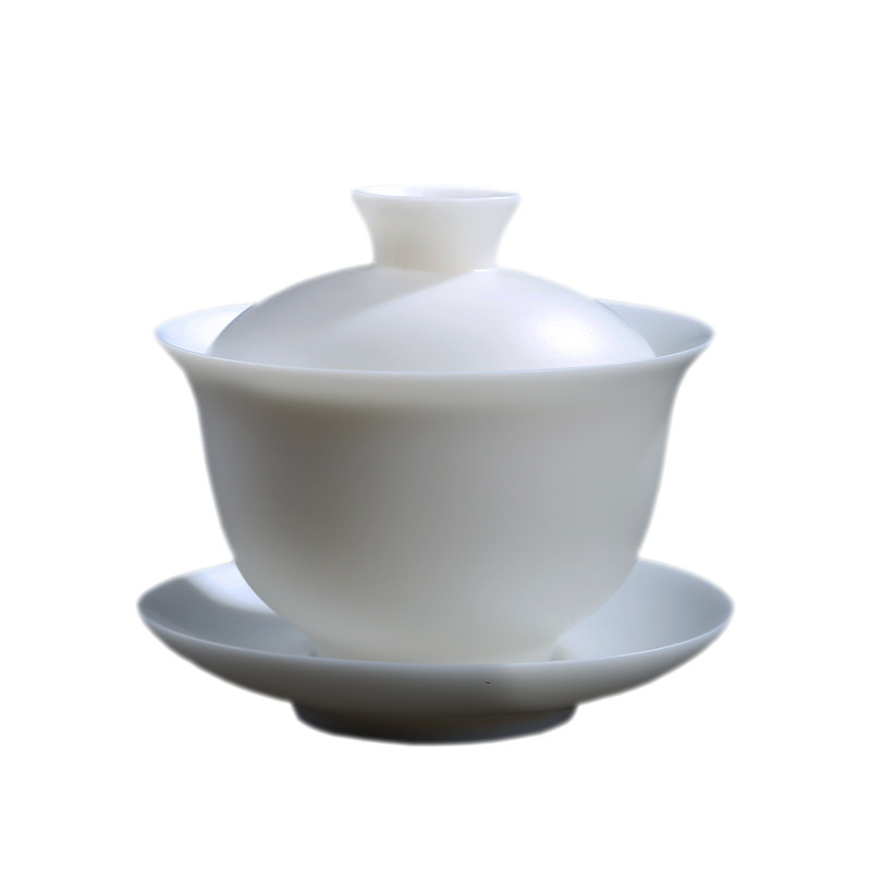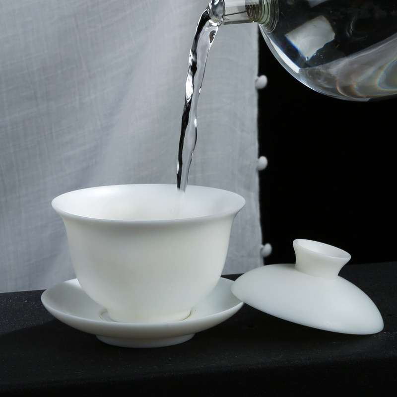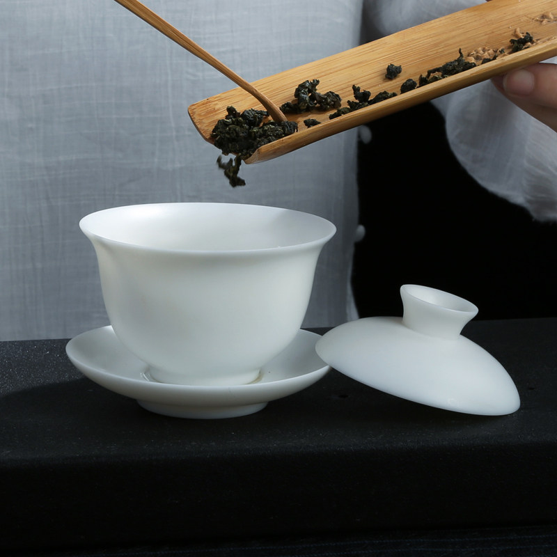 Cover bowl ceramic mutton fat jade vegetarian roast pure white simple Dehua jade porcelain kung fu tea set home sancai bowl tea ceremony accessories