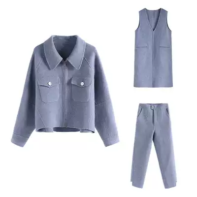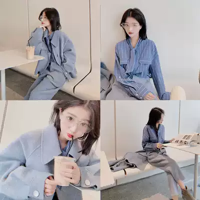 Coat-temperament pure black coat-Mihai gray-blue coat-Rouge powder dress-temperament pure black dress-Mihai gray blue dress-rouge pink pants-temperament pure black pants-sea gray blue pants-Popliteal