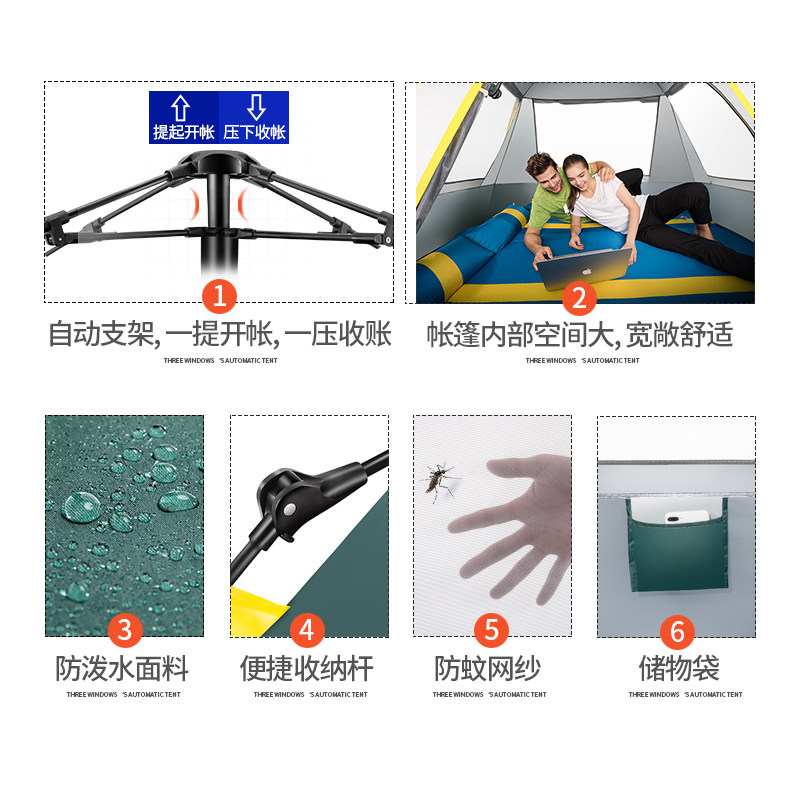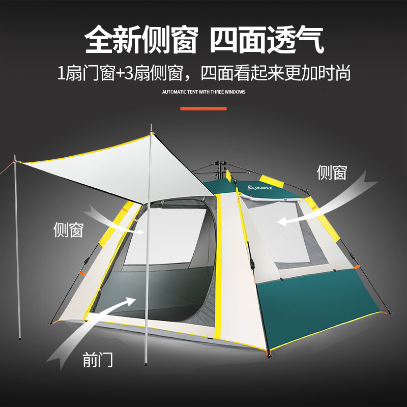 North Mountain Wolf Outdoor Full Automatic Tent Thickened Rain Protection 3-4 Persons Anti-Rain Double Family Camping Camping Double