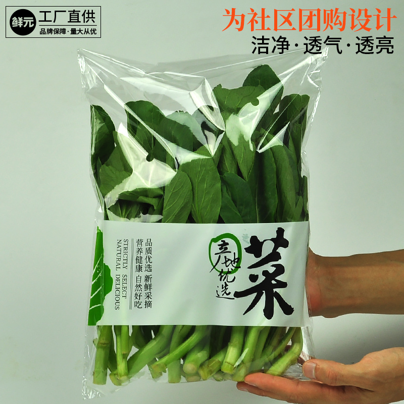 Fresh Yuan custom 1000 anti-fog disposable boutique vegetable bag self-adhesive refreshing bag glass bag green vegetable packing bag