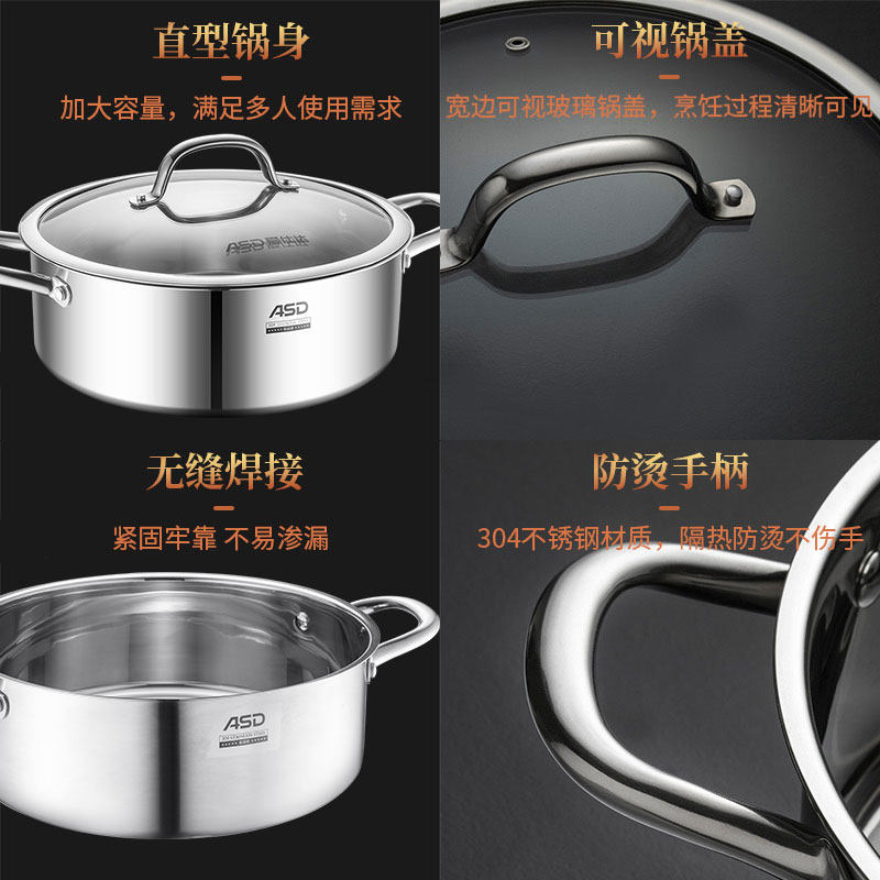 Ashida induction cooker hot pot special pot stainless steel soup pot thickened 304 household extra large capacity large universal