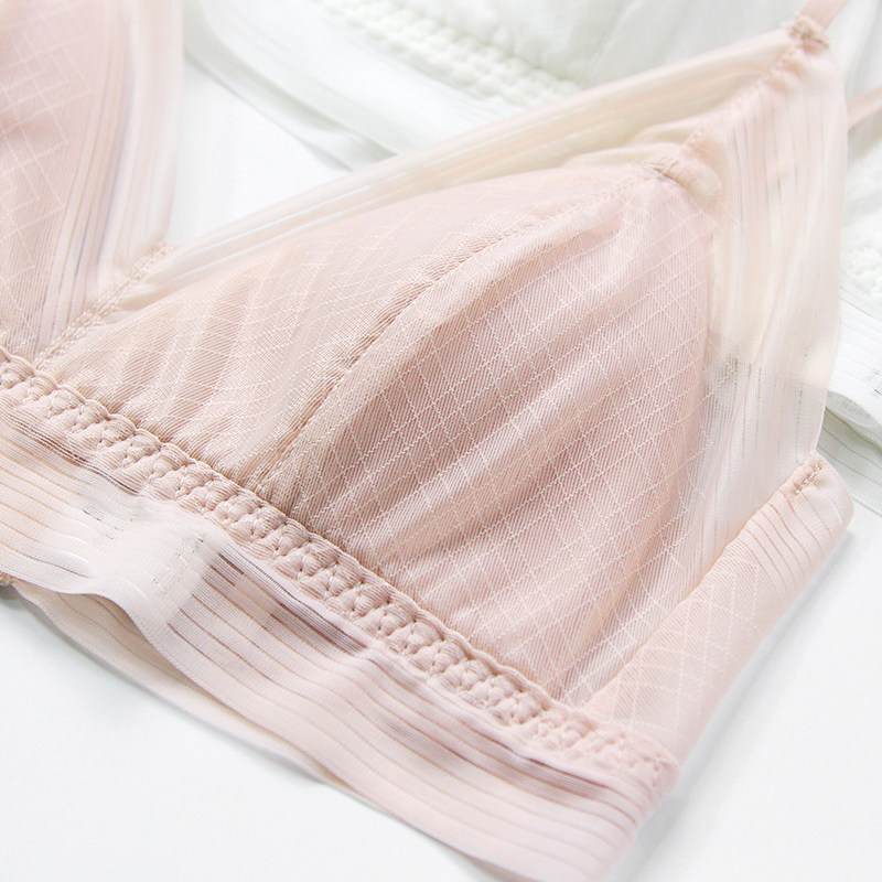 Silk underwear female steel-free ring thin large bra small bra without trace lace ultra-thin breathless triangle bra