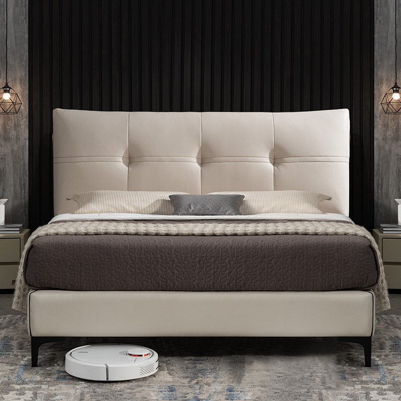 Amy leather bed Mousse master bedroom wedding bed Leather bed Modern simple solid wood soft bag light luxury net red bed Double bed