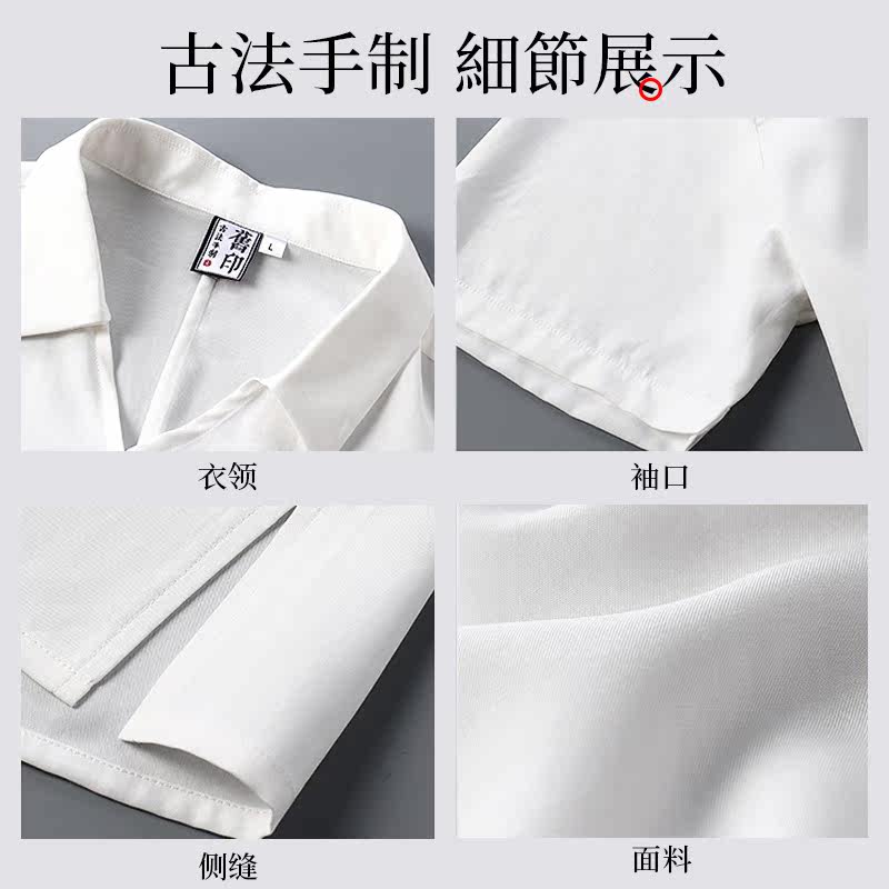 Old print Short sleeves Male Chinese Wind Down Men's Summer Slim Fit Young Polo Shirt High-end Tiansilk Cotton Blouse Shirt Man