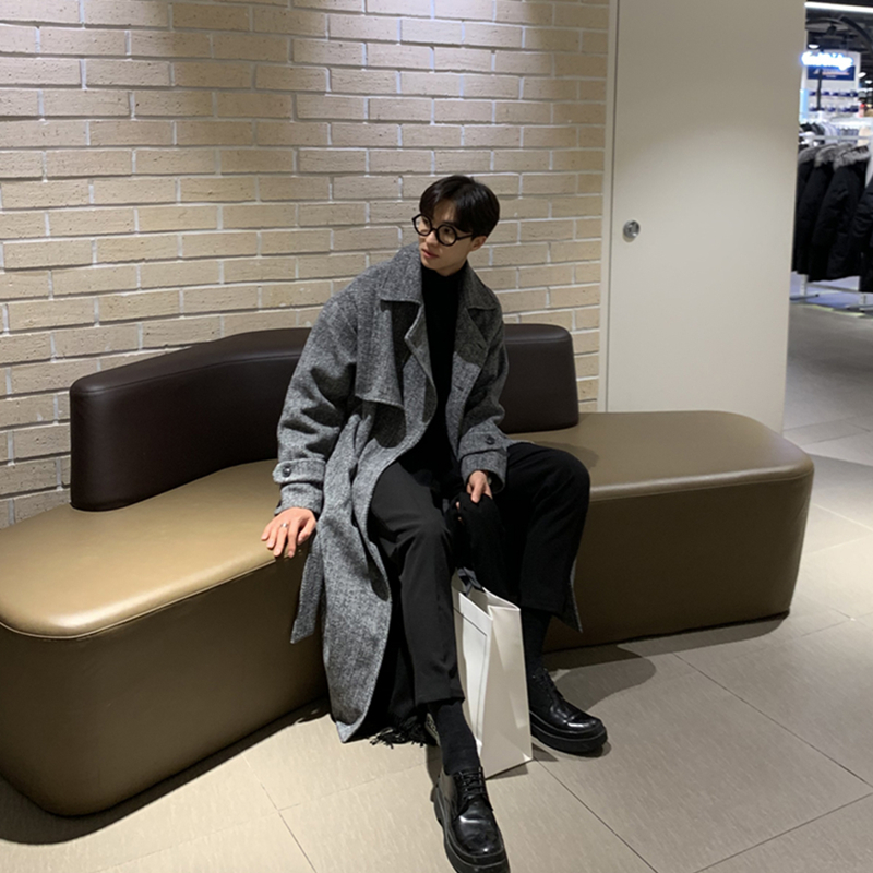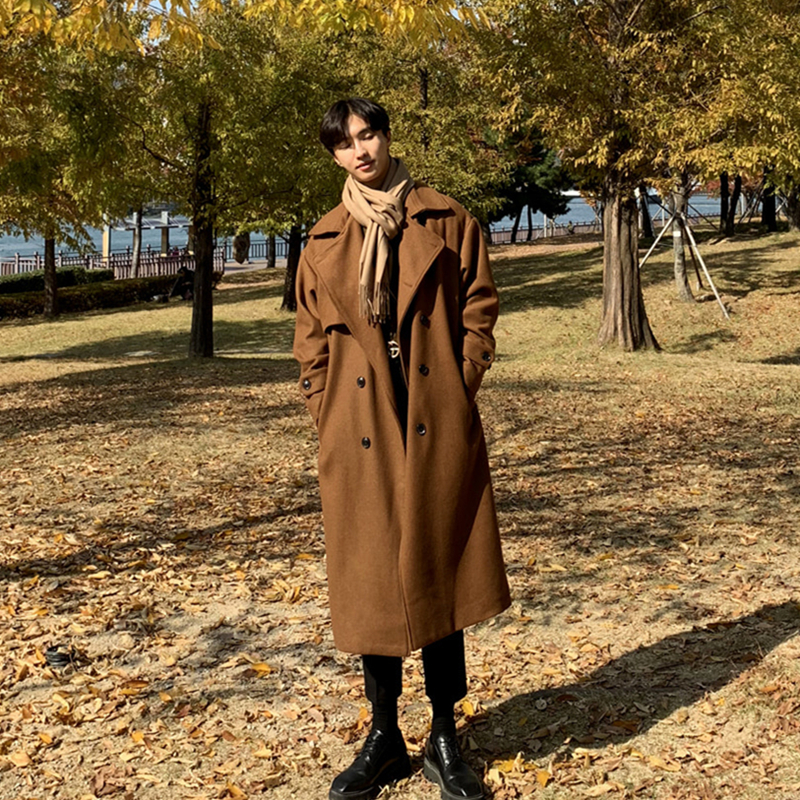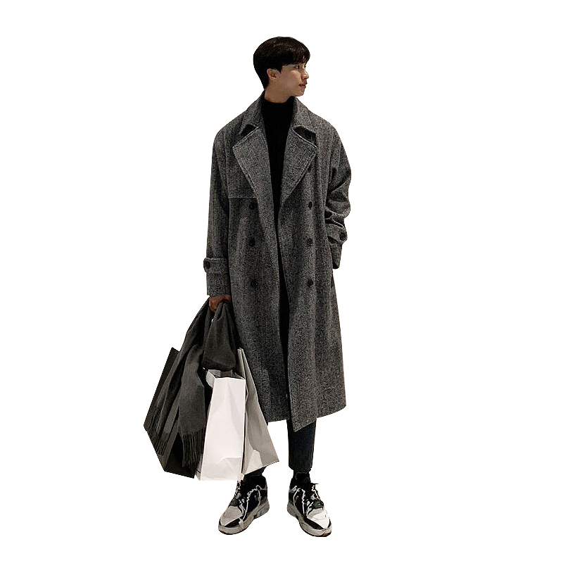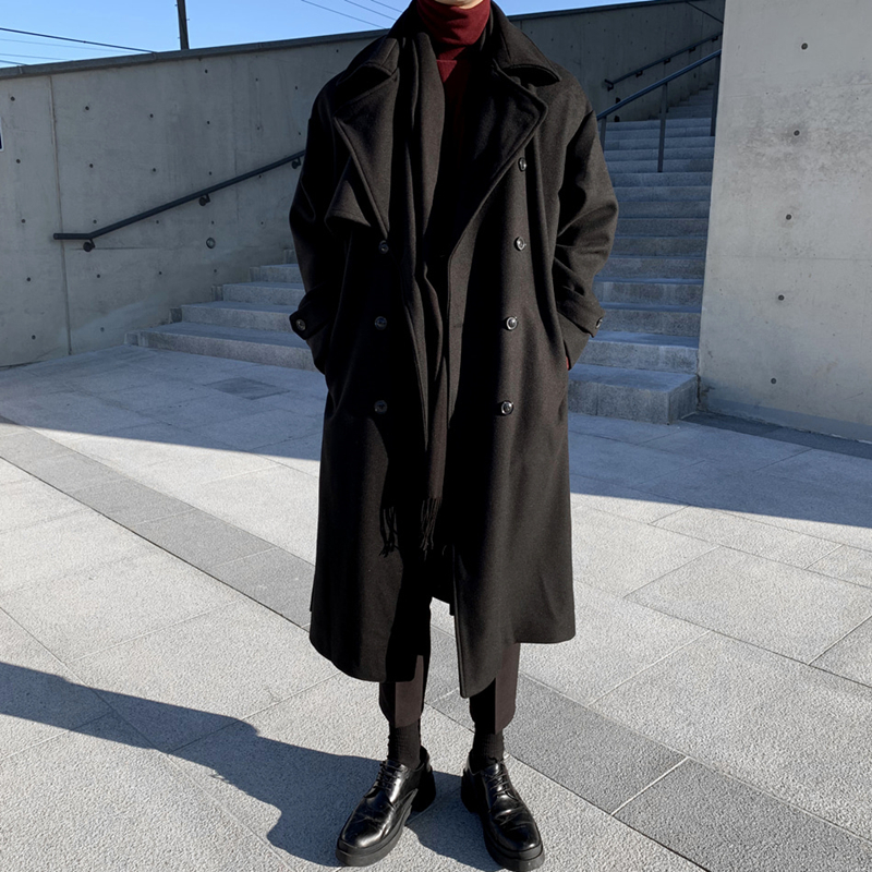 Winter woolen coat men's mid-length Korean version thickened double-breasted men's British style double-sided cashmere windbreaker coat