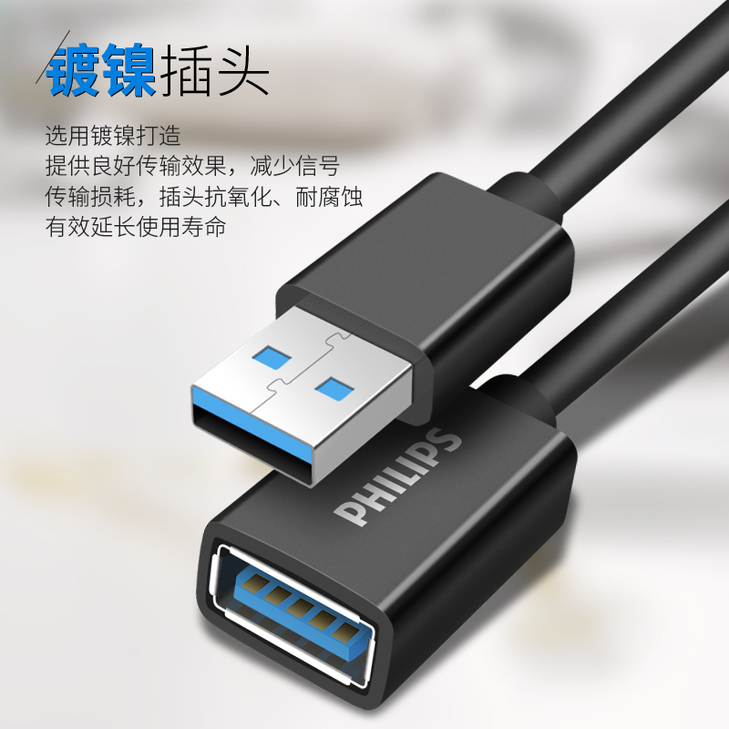 Philips usb extension cable 3 0 male-to-female data cable mouse keyboard network card mobile hard disk U disk computer high-speed usb extension cable connector line extension mobile phone charging interface 1m2 meters