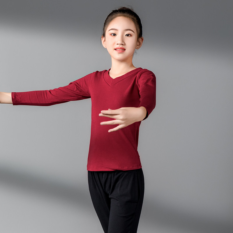 Dance clothing children's female practice clothing autumn and winter long-sleeved girls ballet girls Chinese dance trousers suit can be printed