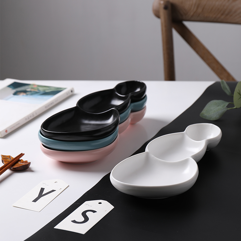 Creative Day Style Hot Pot Cutlery Dish Taste Dish Ceramic Pure glazed dish Three-g small saucer Dorg Dip Saucer Dish-Taobao