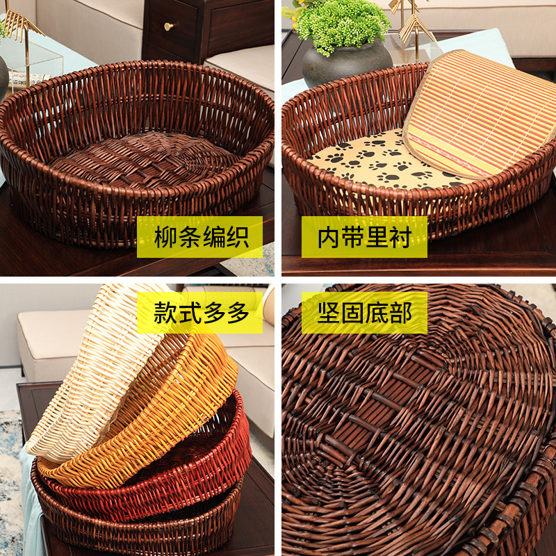 Rattan cat litter four seasons general wicker pet litter summer small and medium Teddy kennel net red removable and washable dog bed