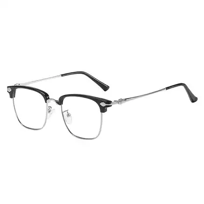 Retro literary Yu Wenle with anti-blue face thin frame half frame metal myopia flat mirror square man