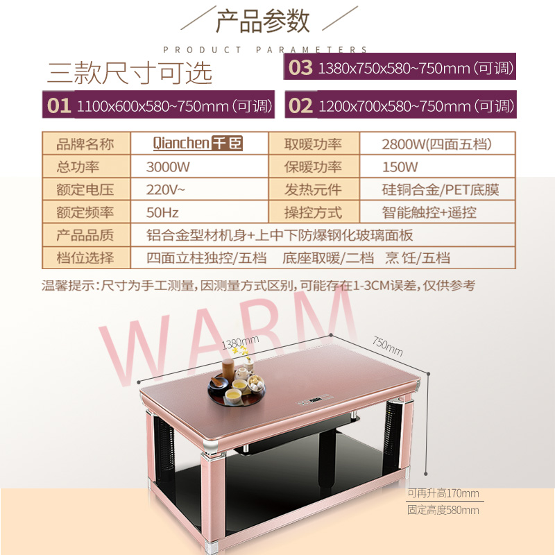 Multifunctional lifting heating tea table electric heating table heating table heating table baking fire table Home warmer electric tea table electric oven