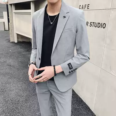 Casual suit suit men Korean version of slim trend handsome small suit two-piece suit jacket men's singles West zx