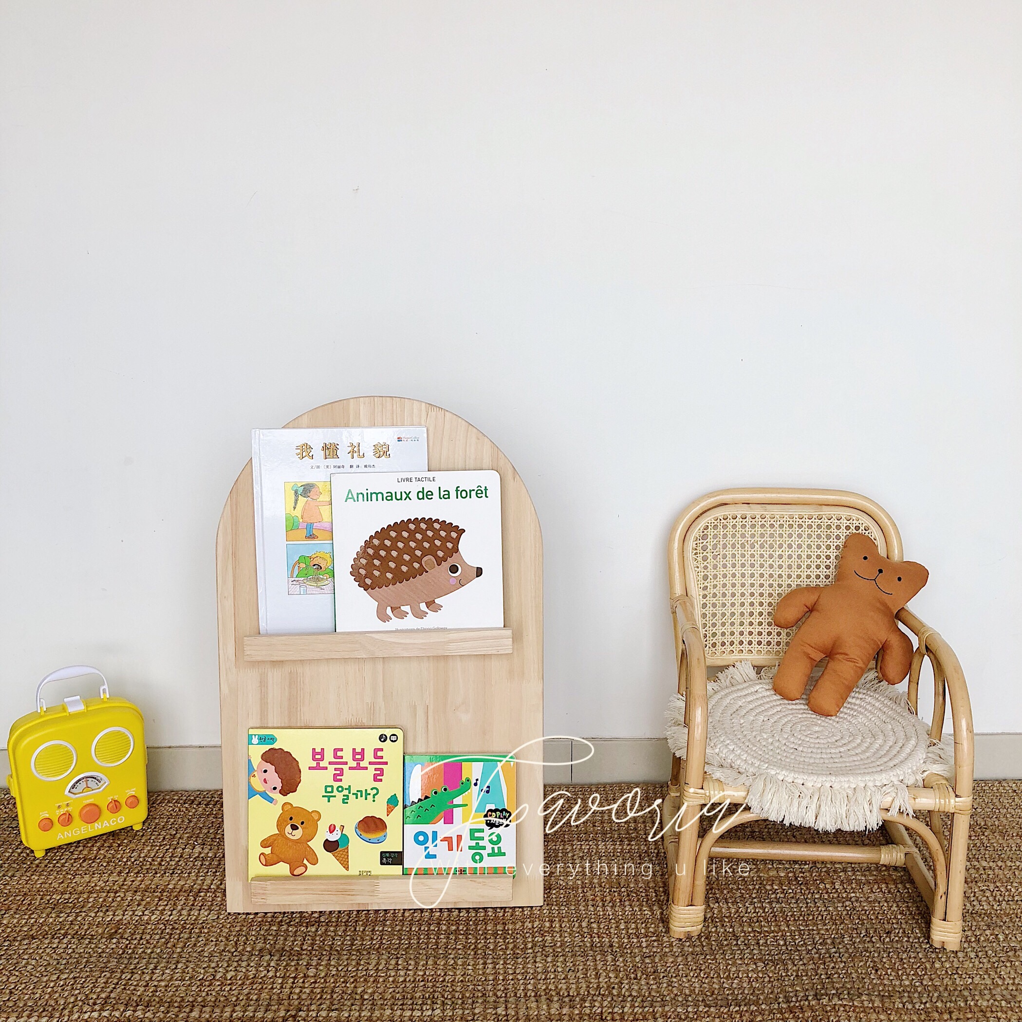 ins Korean children's bookshelf Picture book shelf Kindergarten solid wood storage bookcase Simple floor-to-ceiling baby bookshelf
