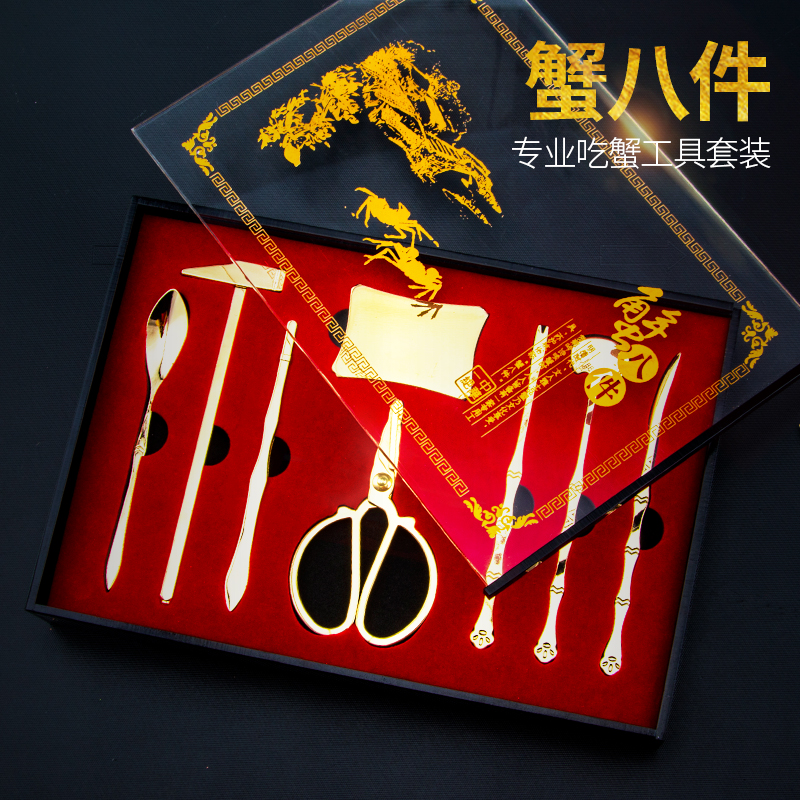 Crab eating tool household stainless steel gold-plated crab eight-piece hairy crab tool crab claw crab clip crab needle crab scissors combination