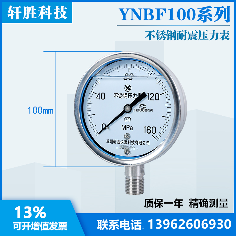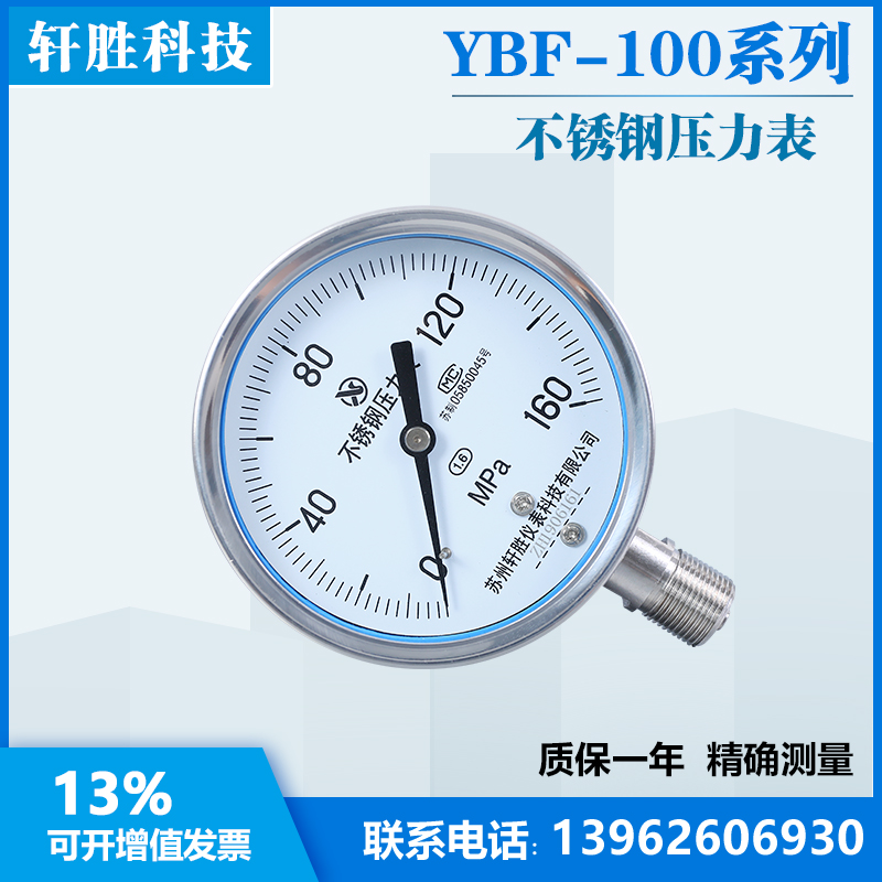 YN100BF 160MPa high pressure stainless steel shock-resistant pressure gauge shock-resistant and shock-resistant stainless steel pressure gauge