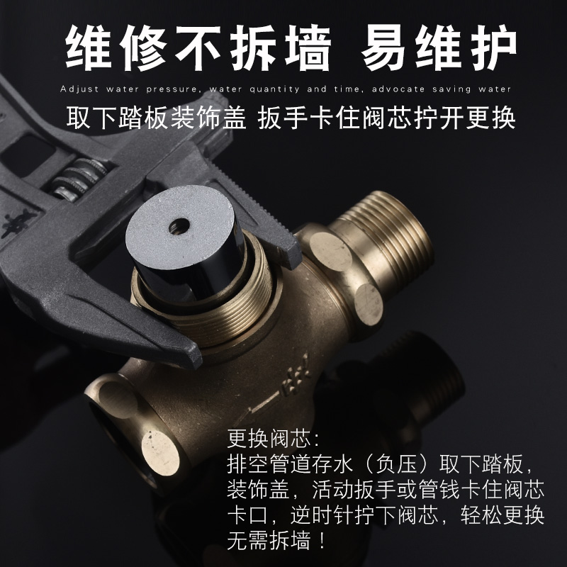 Foot-operated flush valve concealed stool delay valve squat toilet spool accessory squat pit foot flushometer