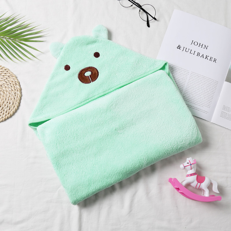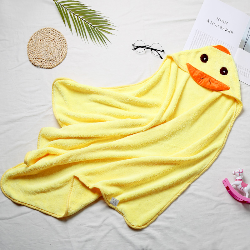 Cute children's bathrobe Swimming cloak hooded bath towel Soft anti-cold coral velvet absorbent beach towel