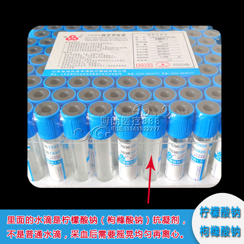 Blood collection vessel hemagglutination tube 2ml5ml10ml Lemon sodium citrate Sterile negative pressure vacuum blue cap anticoagulant tube PRP