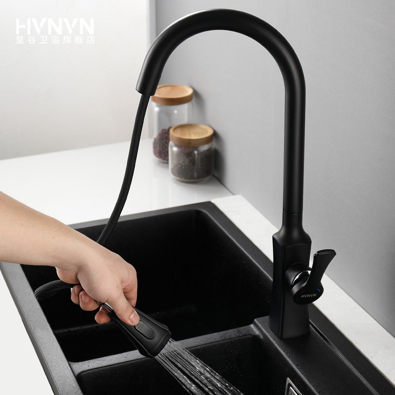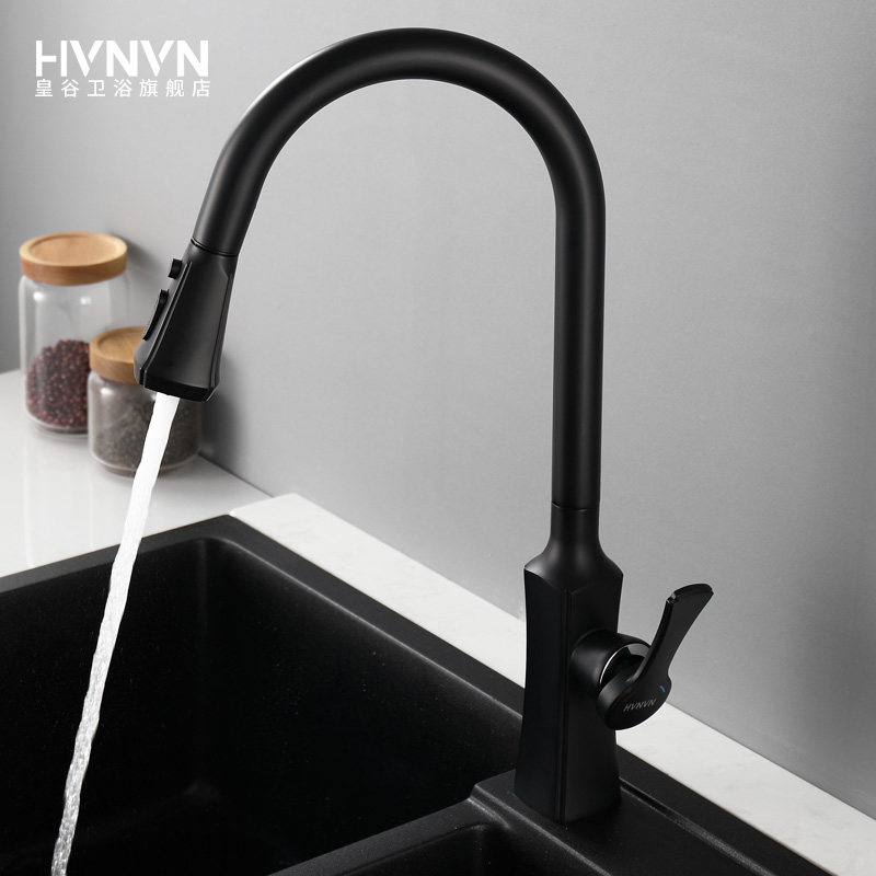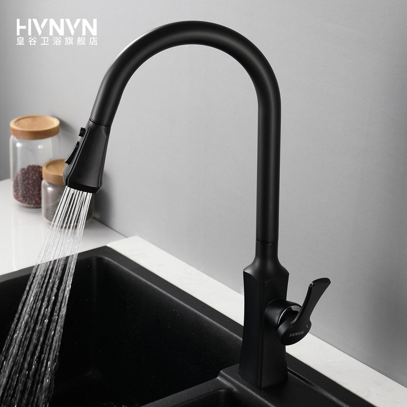 Real Valley bathroom full copper Nordic matt kitchen tap Home sink Vegetable Basin Black Pull-out Rotary Tap