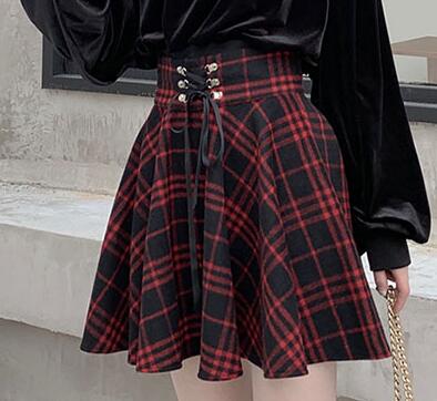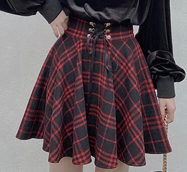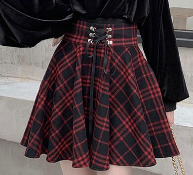 Spot original wide waist red and black grid retro girl dark skirt women's woolen high waist tutu skirt ins autumn and winter