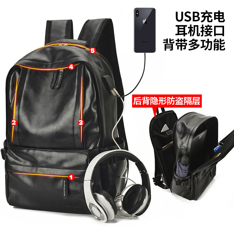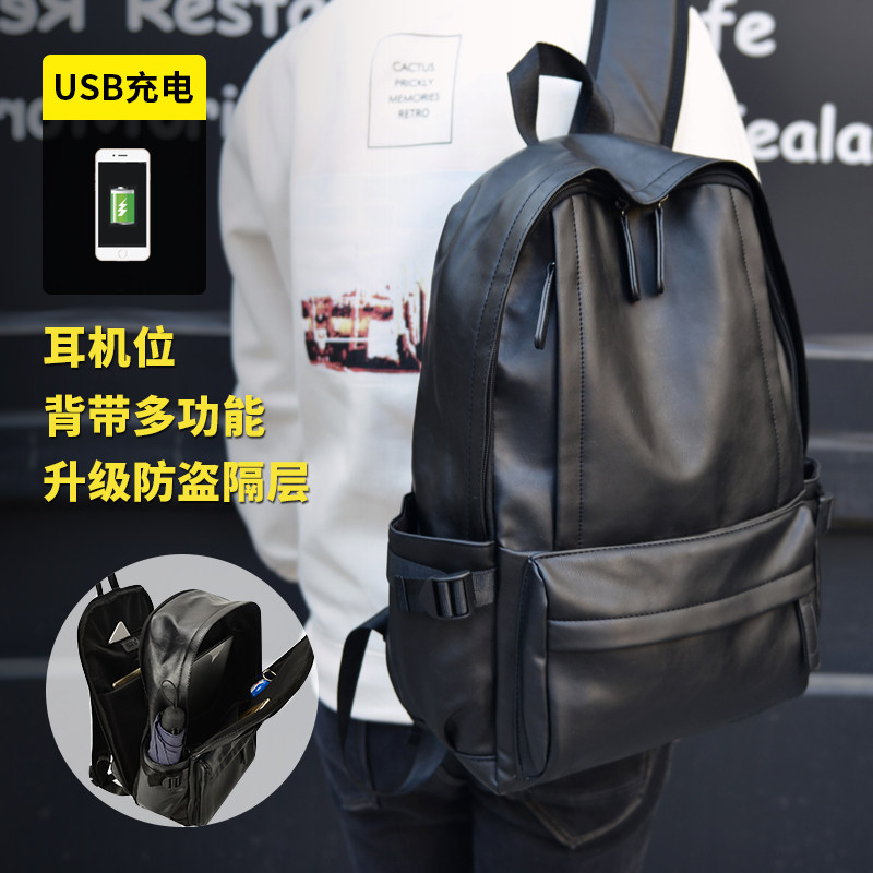 European and American new shoulder bag trendy men's bag leather backpack Korean travel bag fashion student bag female bag computer bag