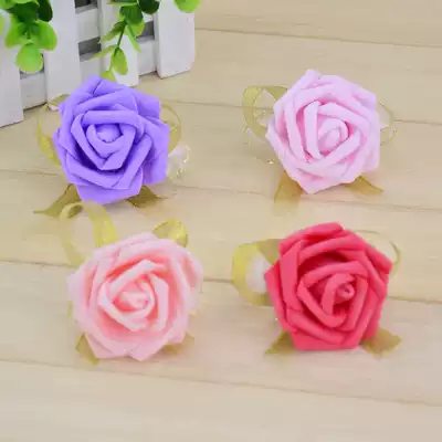 Hand Flower 2 with 1 non-hair wristlet flower PE (champagne White) wrist flower PE (red) wrist flower PE (purple) wrist flower PE (rose pink) wrist flower PE
