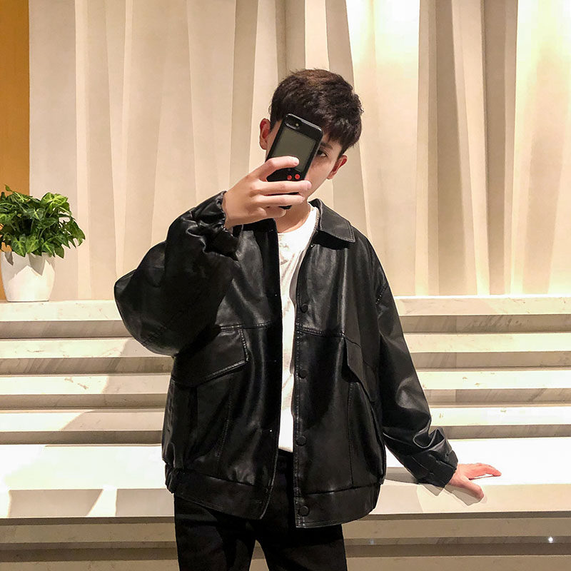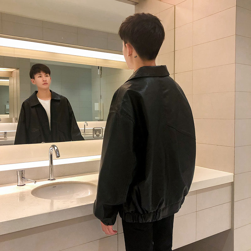 Spring and Autumn Locomotive Clothes Soft Leather Clothes Men Young Roy Handsome Gangleen Jacket Cover