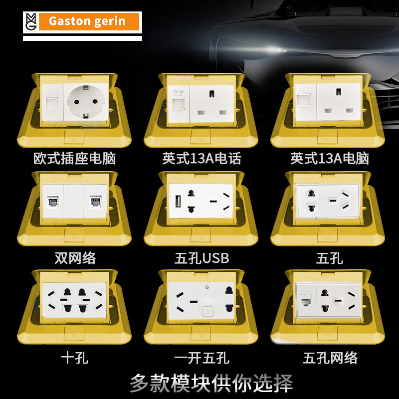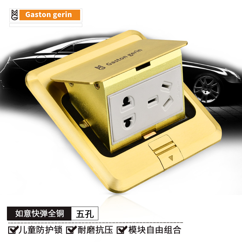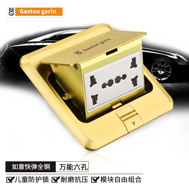 Ground full copper floor socket Pop-up Phone computer concealed second double network Home waterproof floor socket