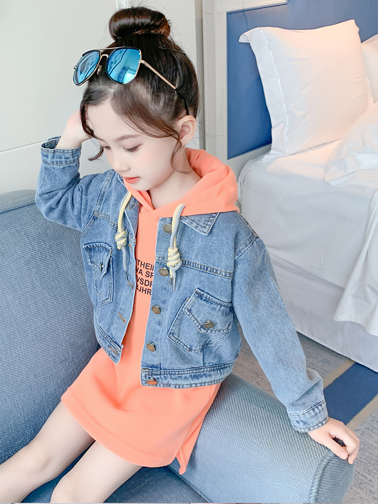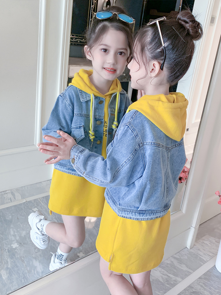 Girls' suit autumn clothes 2021 new children's clothing little girl sweater super foreign style fashionable net red denim two-piece set