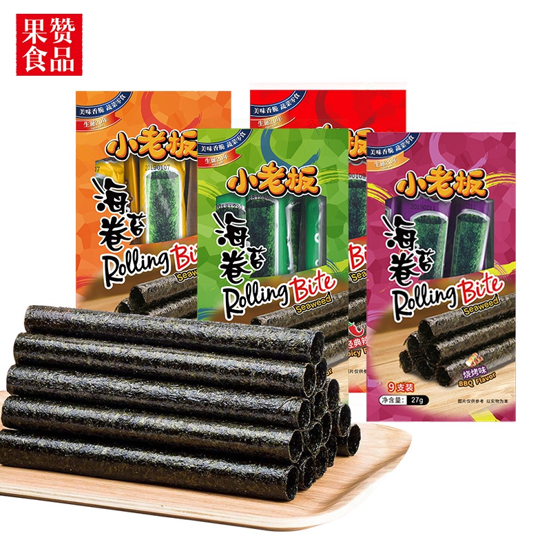 Small boss grilled sea Tweed 27g * 4 boxes Multi-taste Flavoured Crisp Sea Moss Cabbage Rolls Sea-Taste Ready-to-eat Snack