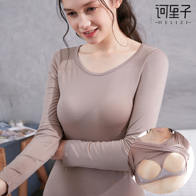 Mask Modal one-piece T-shirt with chest pad Base shirt Women's long-sleeved lining women's thin autumn coat bra-free warm