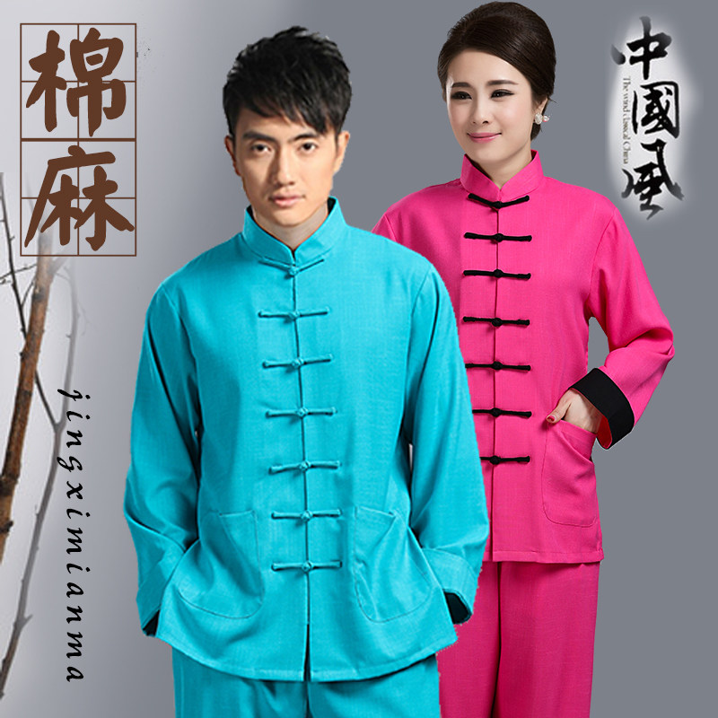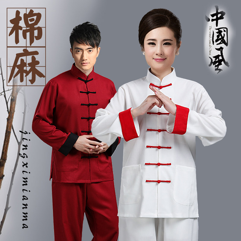 Spring and autumn men and women elastic cotton tai - ji - chi men's Taiji - middle - aged people fitness and martial arts suit