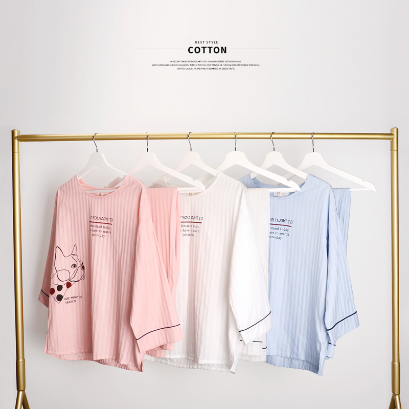 Woven cotton spring and summer thin pajamas Women's spring and autumn long-sleeved cotton seven-point sleeve home clothes casual can go out