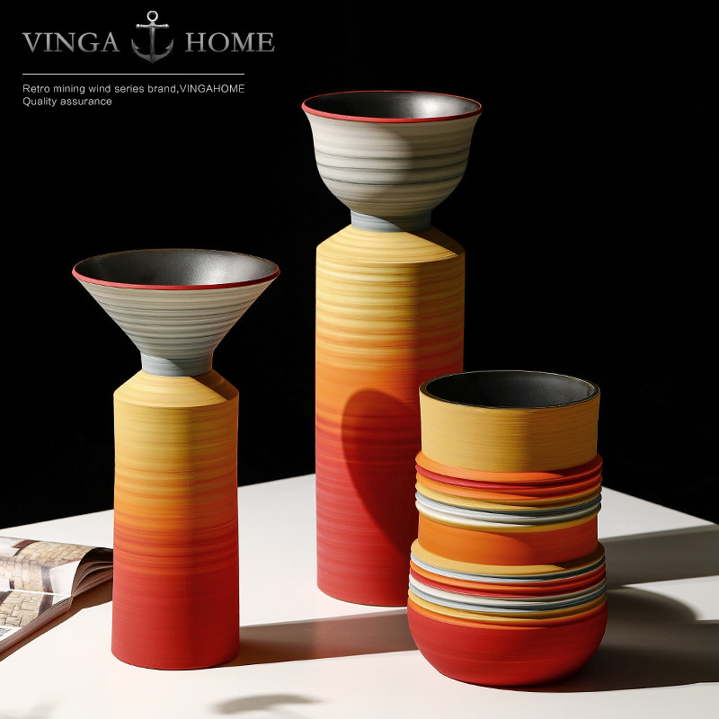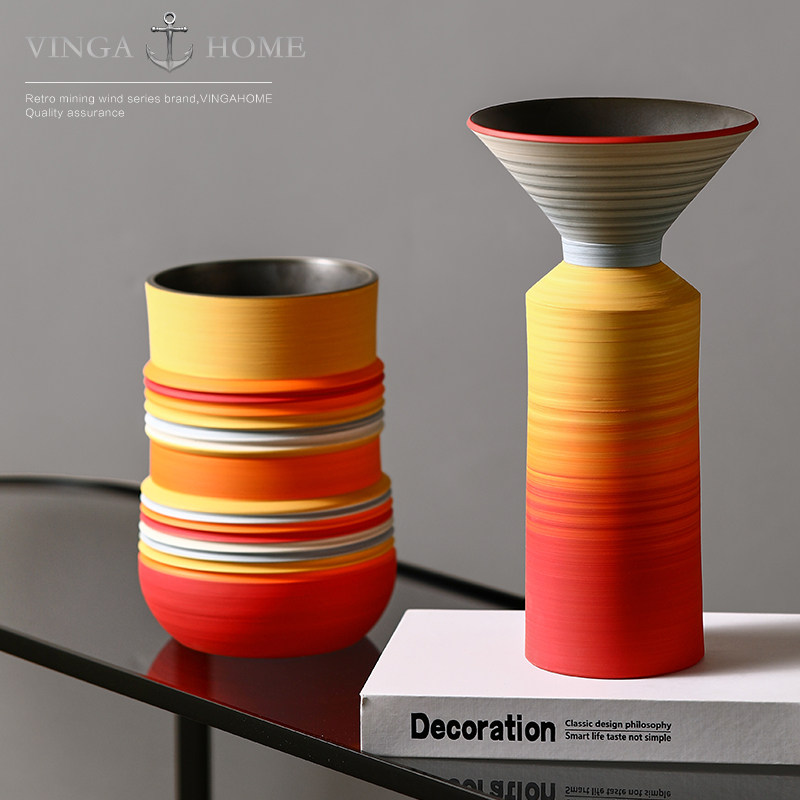 Nordic ins creative Morandi color ceramic round mouth vase living room dining table coffee table dry flower arrangement flower arrangement