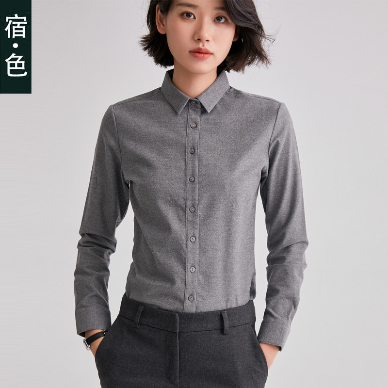 Su color brushed shirt women's gray long-sleeved autumn and winter all-match professional top thickened cotton high-end inner shirt