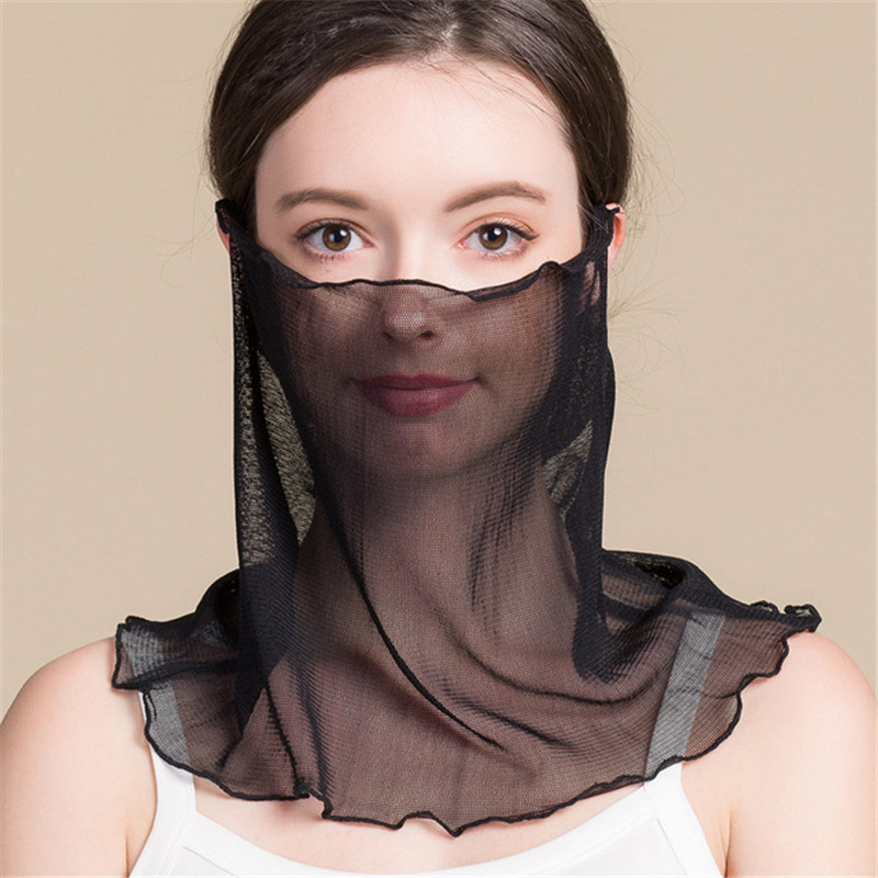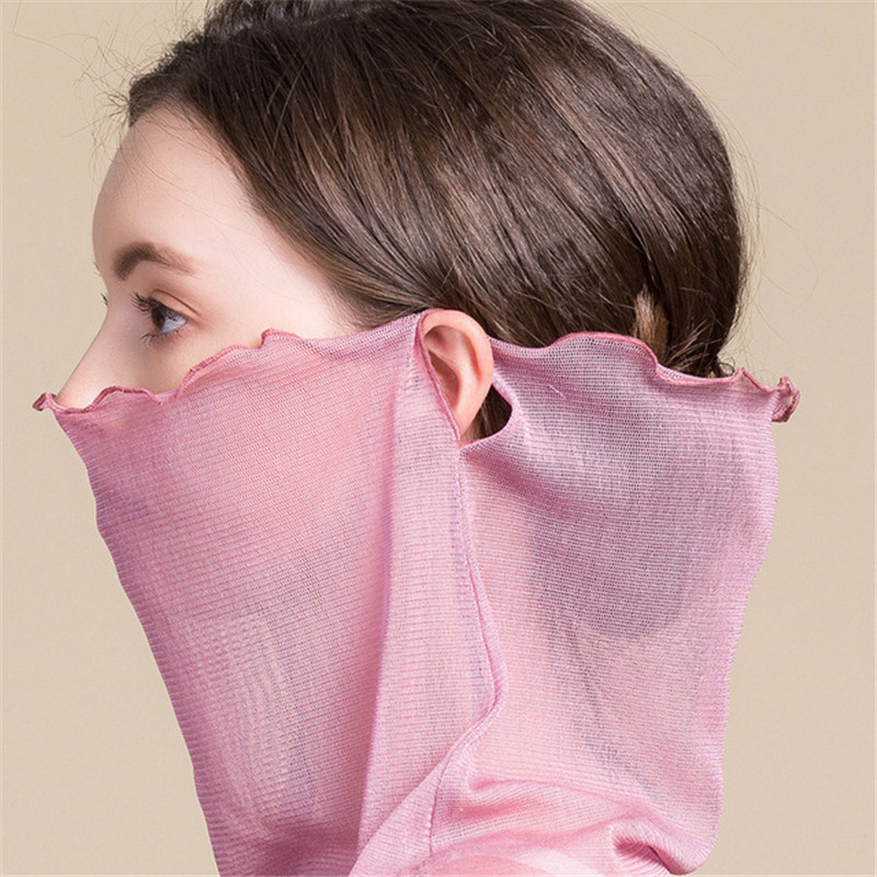 Japan 100 Hitch Real Silk Mask Sleeve Head Scarf female fashion Pure color sunscreen Breathable Thin FACE HOOD NECK COVER SMALL SILK SCARVES