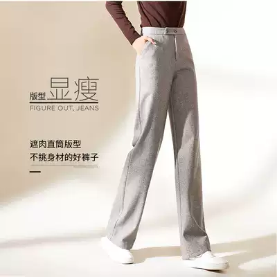 Yiyang wide leg pants women's 2020 autumn and winter New High waist drape loose slim hairy casual straight pants 3441
