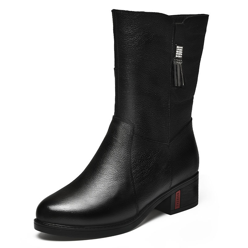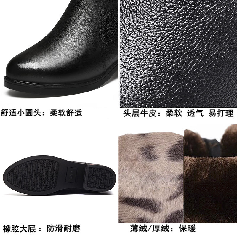Boots women's winter plus velvet thickened leather mid-tube boots mid-heel mother boots cowhide warm thick-heeled middle-aged and elderly women's shoes