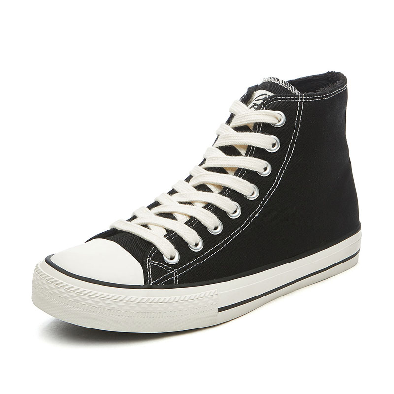 Renben men's shoes winter plus velvet high-top canvas shoes men's trendy all-match casual student couple sneakers warm cotton shoes