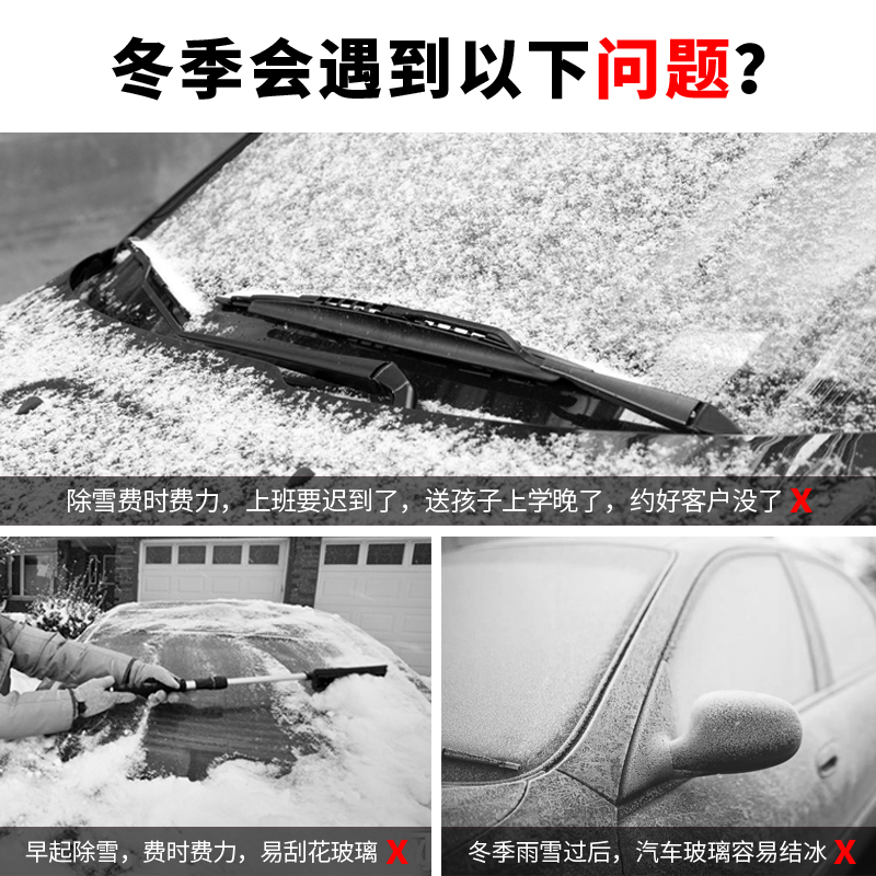 Front windshield full coverage quick snow removal installation convenient collection plus purchase and removal snow shovel One aluminum foil silver (magnetic buckle strap insert buckle) (upgrade section) Special car special aluminum foil silver color (magnetic